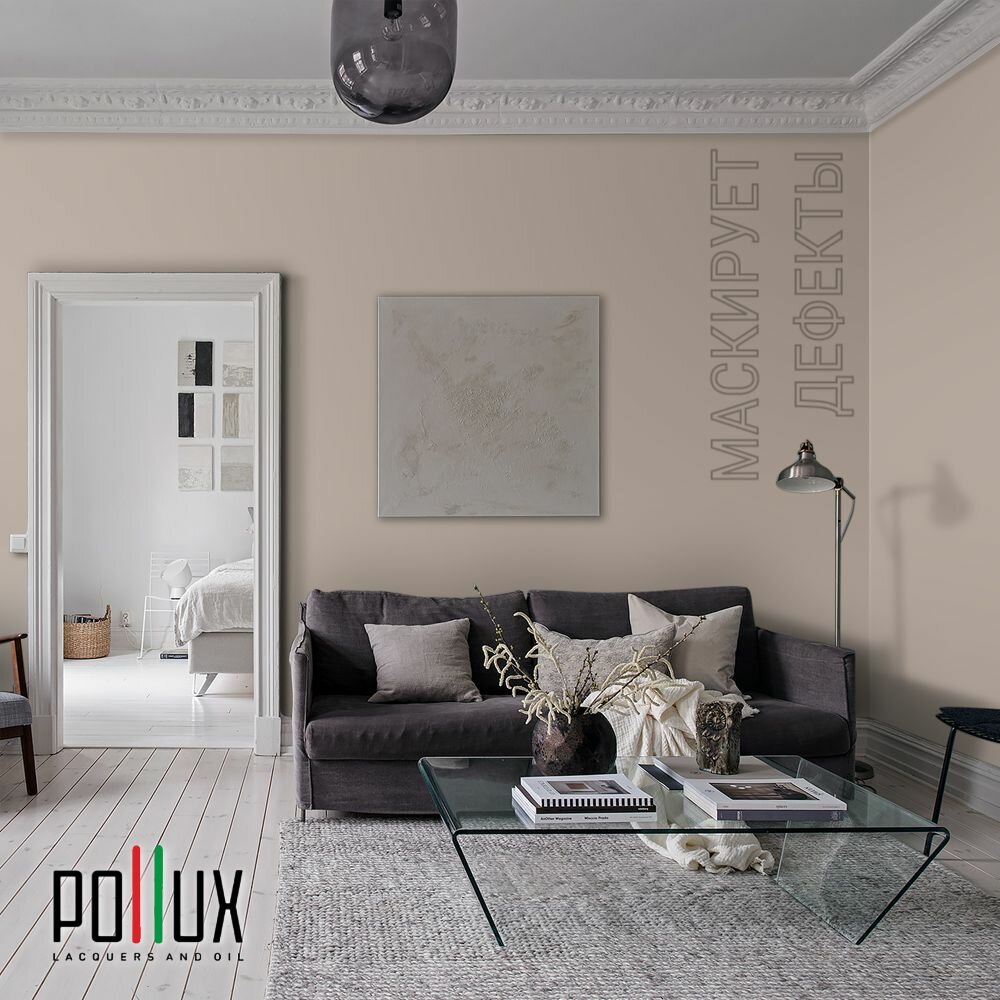 Краска моющаяся интерьерная для стен и потолков, Pollux INTERIOR без запаха, быстросохнущая, акриловая, матовое покрытие, цвет NCS S 7010-Y50R, 1л.
