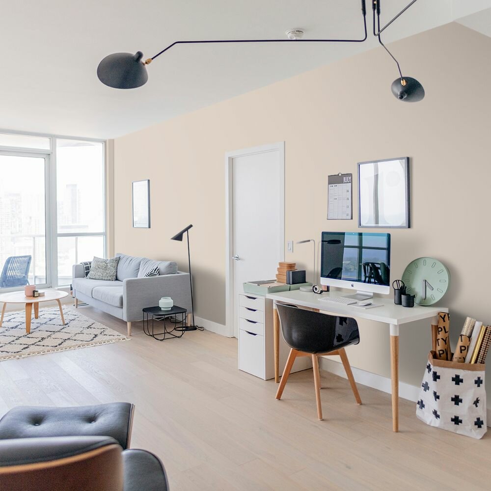 Краска моющаяся интерьерная для стен и потолков, Pollux INTERIOR без запаха, быстросохнущая, акриловая, матовое покрытие, цвет NCS S 0907-Y50R, 1л.