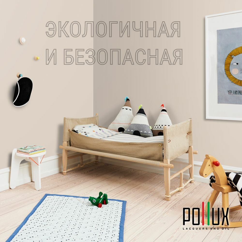 Краска моющаяся интерьерная для стен и потолков, Pollux INTERIOR без запаха, быстросохнущая, акриловая, матовое покрытие, цвет NCS S 1502-Y50R, 1л.