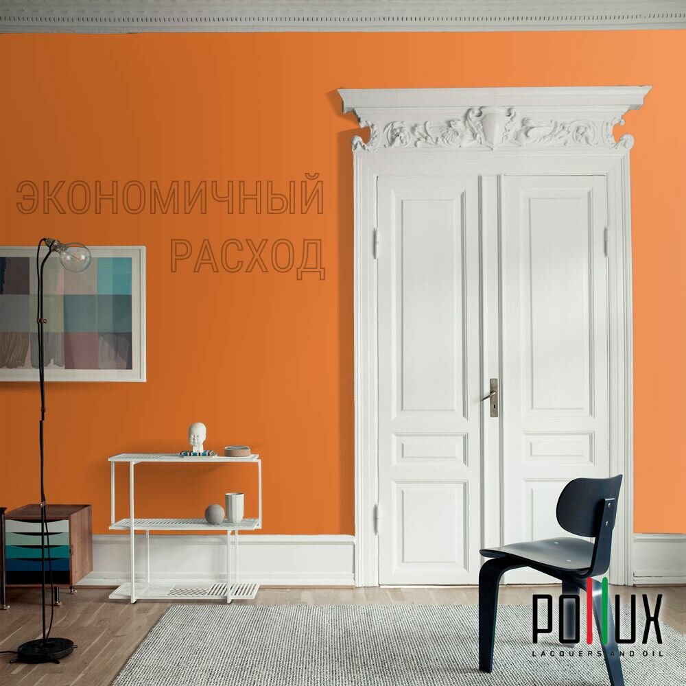 Краска моющаяся интерьерная для стен и потолков, Pollux INTERIOR без запаха, быстросохнущая, акриловая, матовое покрытие, цвет NCS S 1080-Y50R, 1л.