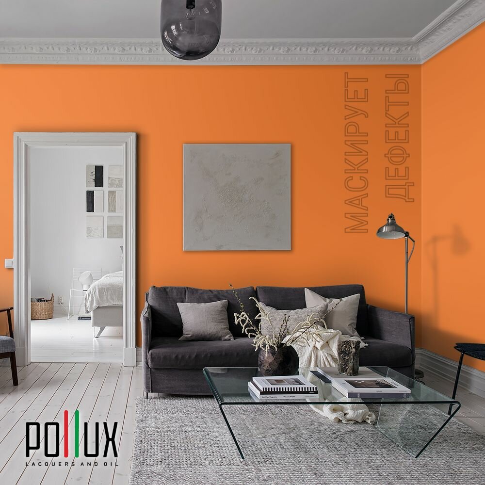 Краска моющаяся интерьерная для стен и потолков, Pollux INTERIOR без запаха, быстросохнущая, акриловая, матовое покрытие, цвет NCS S 3060-Y50R, 1л.