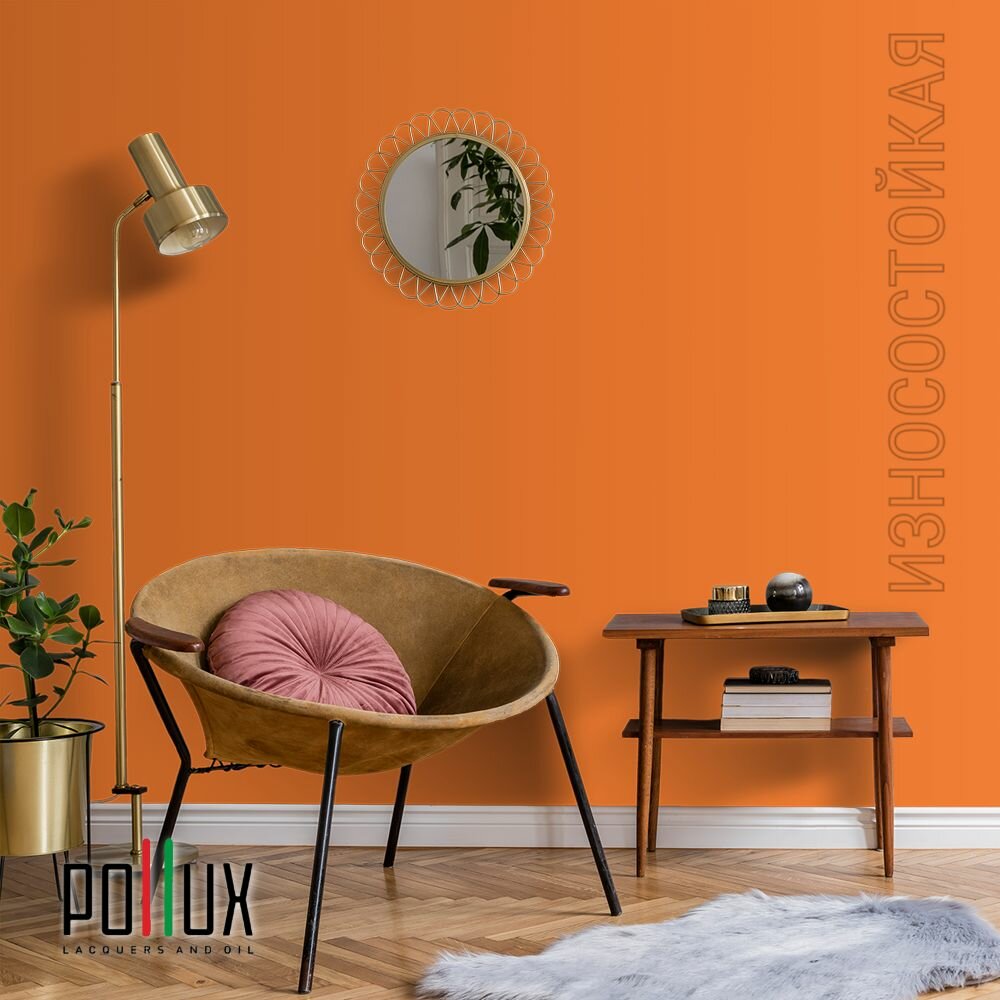 Краска моющаяся интерьерная для стен и потолков, Pollux INTERIOR без запаха, быстросохнущая, акриловая, матовое покрытие, цвет NCS S 1060-Y50R, 1л.