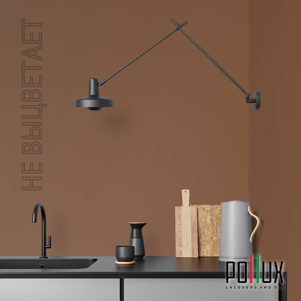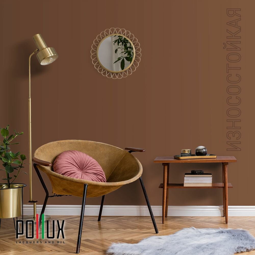 Краска моющаяся интерьерная для стен и потолков, Pollux INTERIOR без запаха, быстросохнущая, акриловая, матовое покрытие, цвет NCS S 8010-Y50R, 1л.