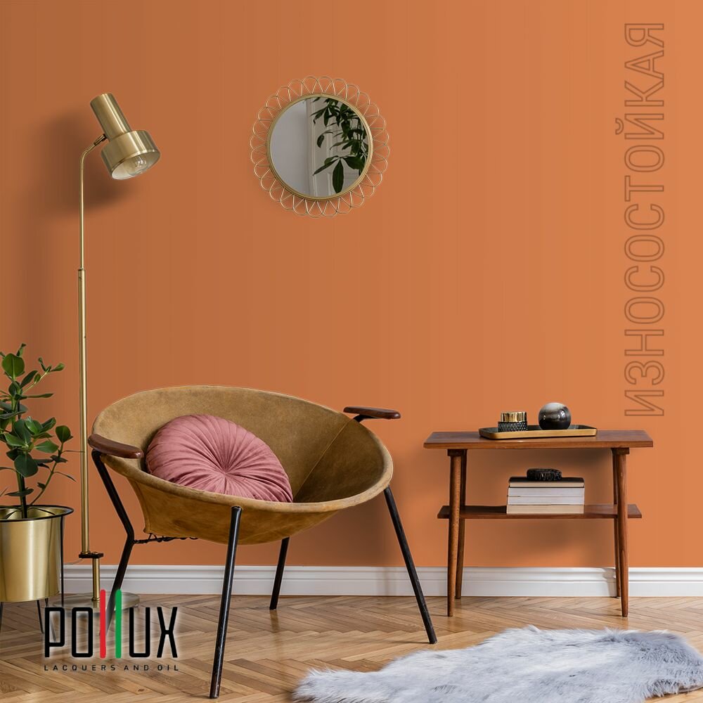 Краска моющаяся интерьерная для стен и потолков, Pollux INTERIOR без запаха, быстросохнущая, акриловая, матовое покрытие, цвет NCS S 1060-Y50R, 1л.