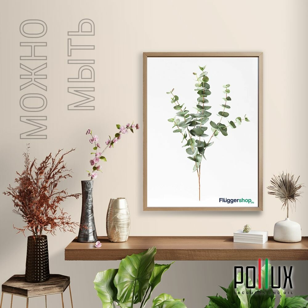 Краска моющаяся интерьерная для стен и потолков, Pollux INTERIOR без запаха, быстросохнущая, акриловая, матовое покрытие, цвет NCS S 7005-Y50R, 1л.