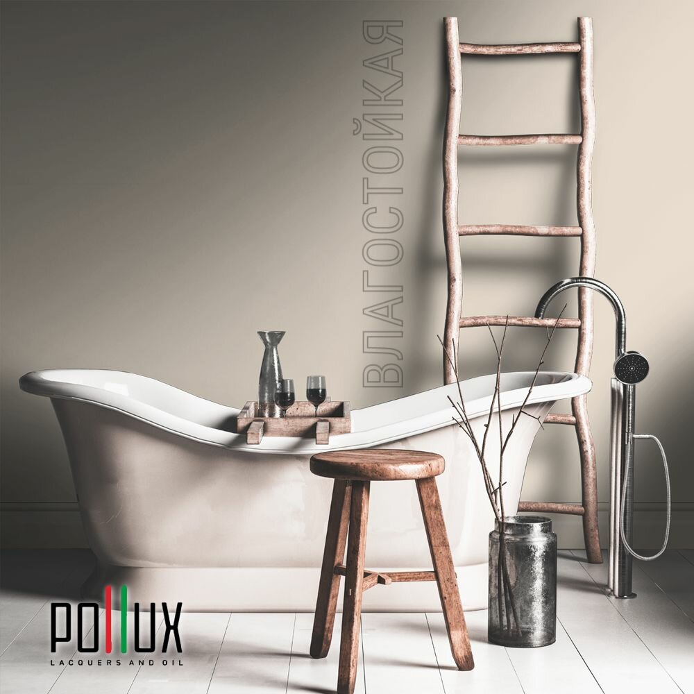 Краска моющаяся интерьерная для стен и потолков, Pollux INTERIOR без запаха, быстросохнущая, акриловая, матовое покрытие, цвет NCS S 7010-Y50R, 1л.