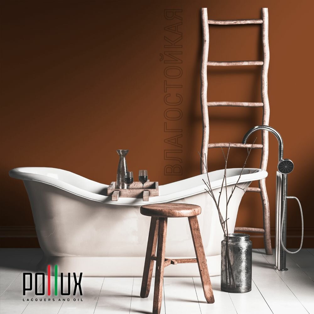 Краска моющаяся интерьерная для стен и потолков, Pollux INTERIOR без запаха, быстросохнущая, акриловая, матовое покрытие, цвет NCS S 8010-Y50R, 1л.