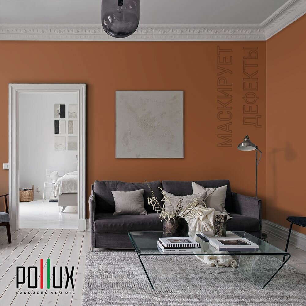 Краска моющаяся интерьерная для стен и потолков, Pollux INTERIOR без запаха, быстросохнущая, акриловая, матовое покрытие, цвет NCS S 3060-Y50R, 1л.