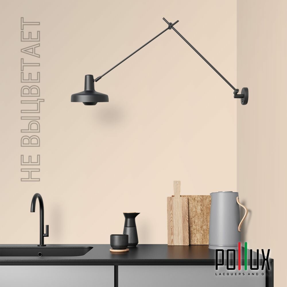 Краска моющаяся интерьерная для стен и потолков, Pollux INTERIOR без запаха, быстросохнущая, акриловая, матовое покрытие, цвет NCS S 7010-Y50R, 1л.