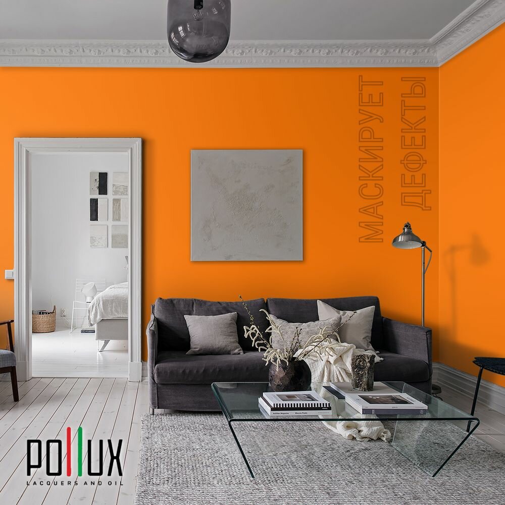 Краска моющаяся интерьерная для стен и потолков, Pollux INTERIOR без запаха, быстросохнущая, акриловая, матовое покрытие, цвет NCS S 3060-Y50R, 1л.