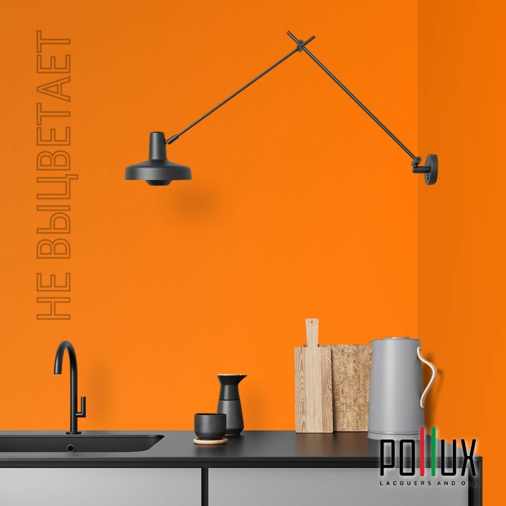 Краска моющаяся интерьерная для стен и потолков, Pollux INTERIOR без запаха, быстросохнущая, акриловая, матовое покрытие, цвет NCS S 1060-Y50R, 1л.