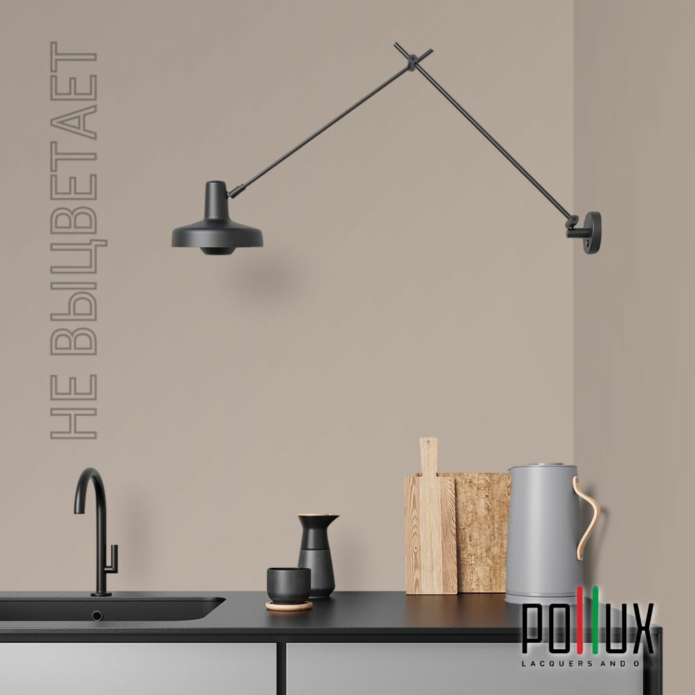 Краска моющаяся интерьерная для стен и потолков, Pollux INTERIOR без запаха, быстросохнущая, акриловая, матовое покрытие, цвет NCS S 7010-Y50R, 1л.