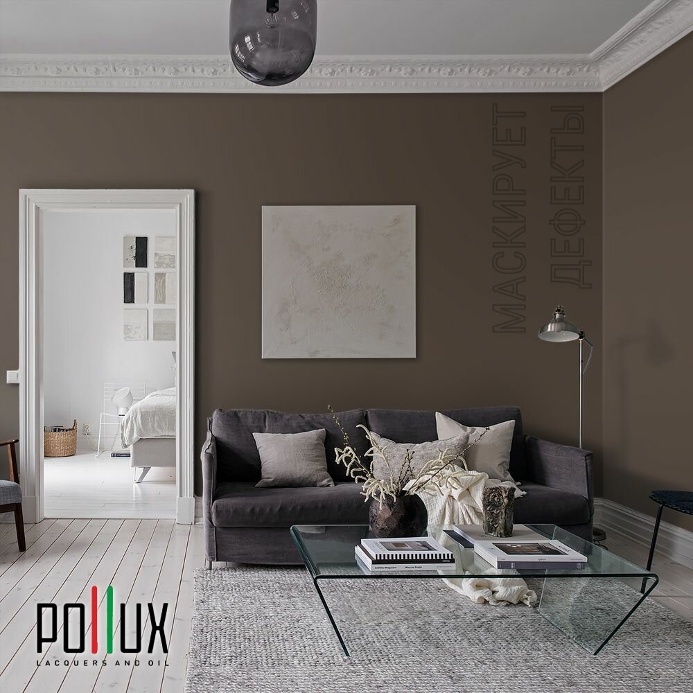 Краска моющаяся интерьерная для стен и потолков, Pollux INTERIOR без запаха, быстросохнущая, акриловая, матовое покрытие, цвет NCS S 7010-Y50R, 1л.