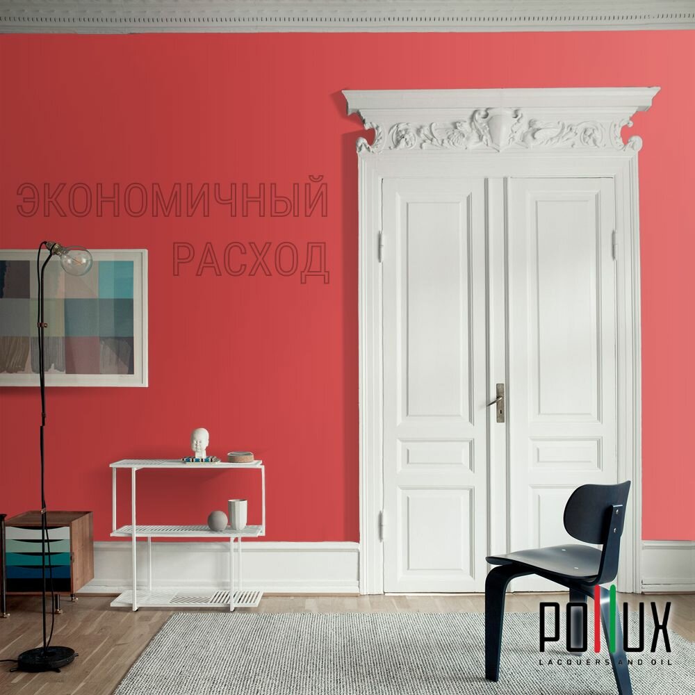 Краска моющаяся интерьерная для стен и потолков, Pollux INTERIOR без запаха, быстросохнущая, акриловая, матовое покрытие, цвет NCS S 3050-Y90R, 1л.