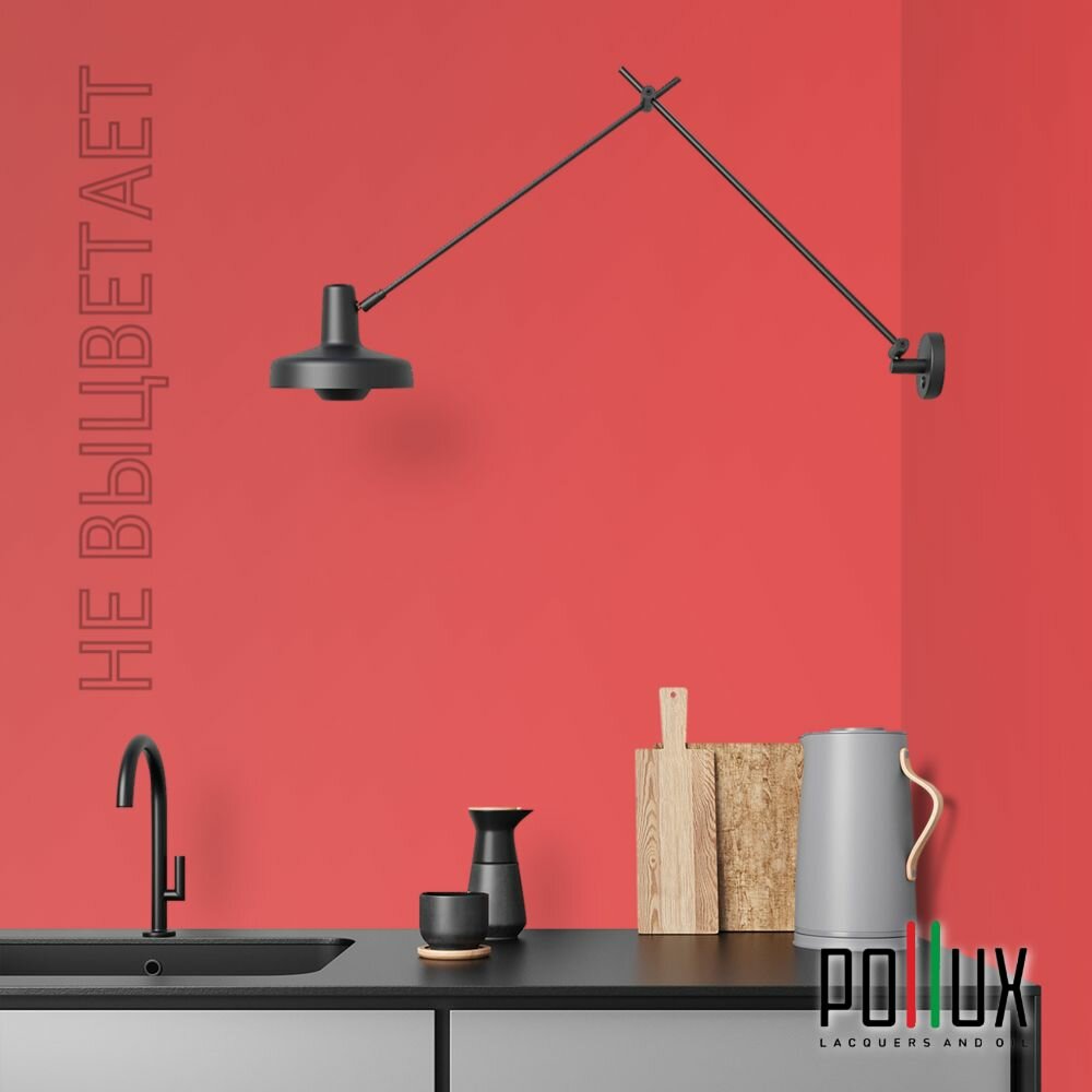 Краска моющаяся интерьерная для стен и потолков, Pollux INTERIOR без запаха, быстросохнущая, акриловая, матовое покрытие, цвет NCS S 3010-Y90R, 1л.