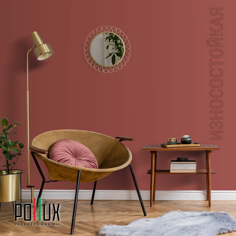 Краска моющаяся интерьерная для стен и потолков, Pollux INTERIOR без запаха, быстросохнущая, акриловая, матовое покрытие, цвет NCS S 3010-Y90R, 1л.