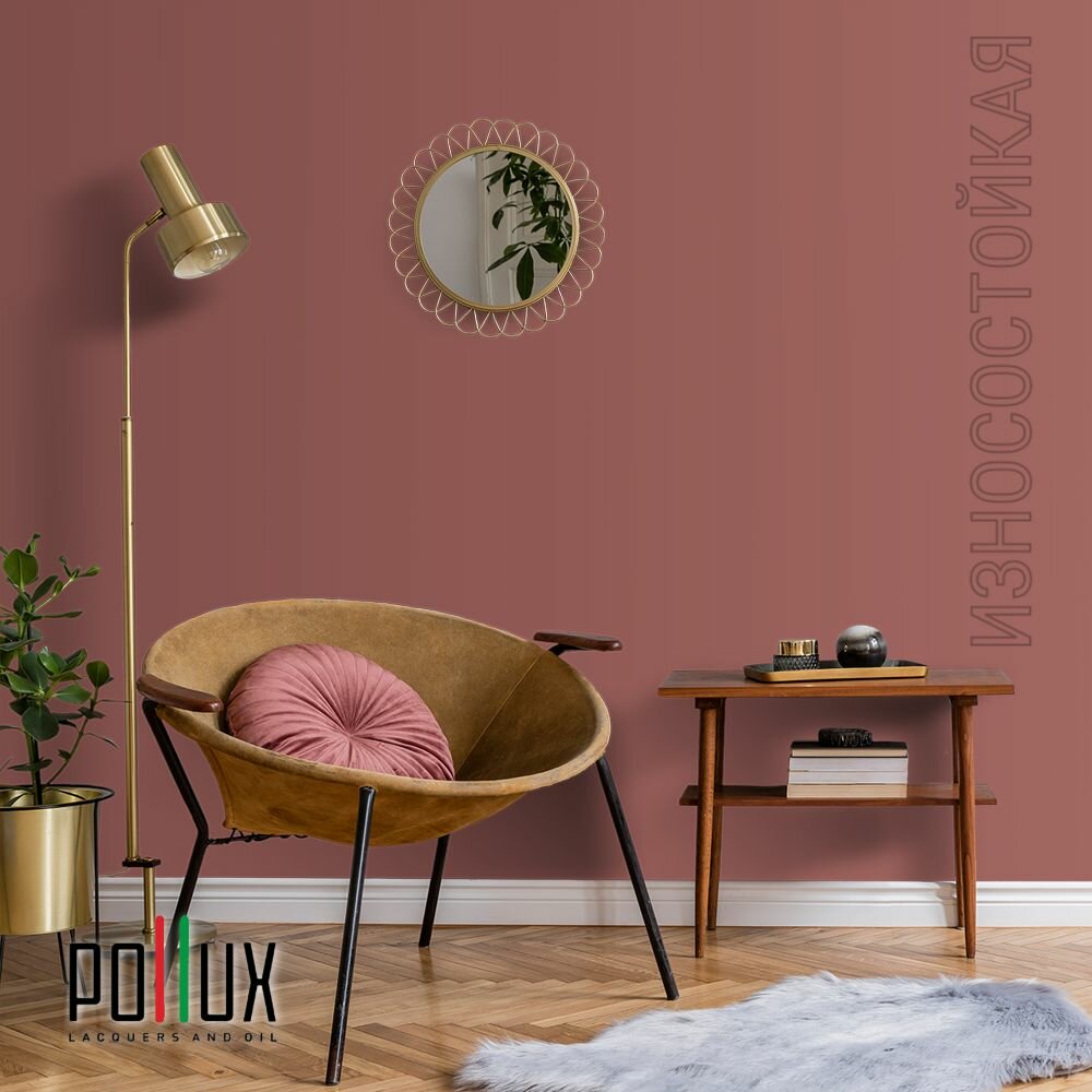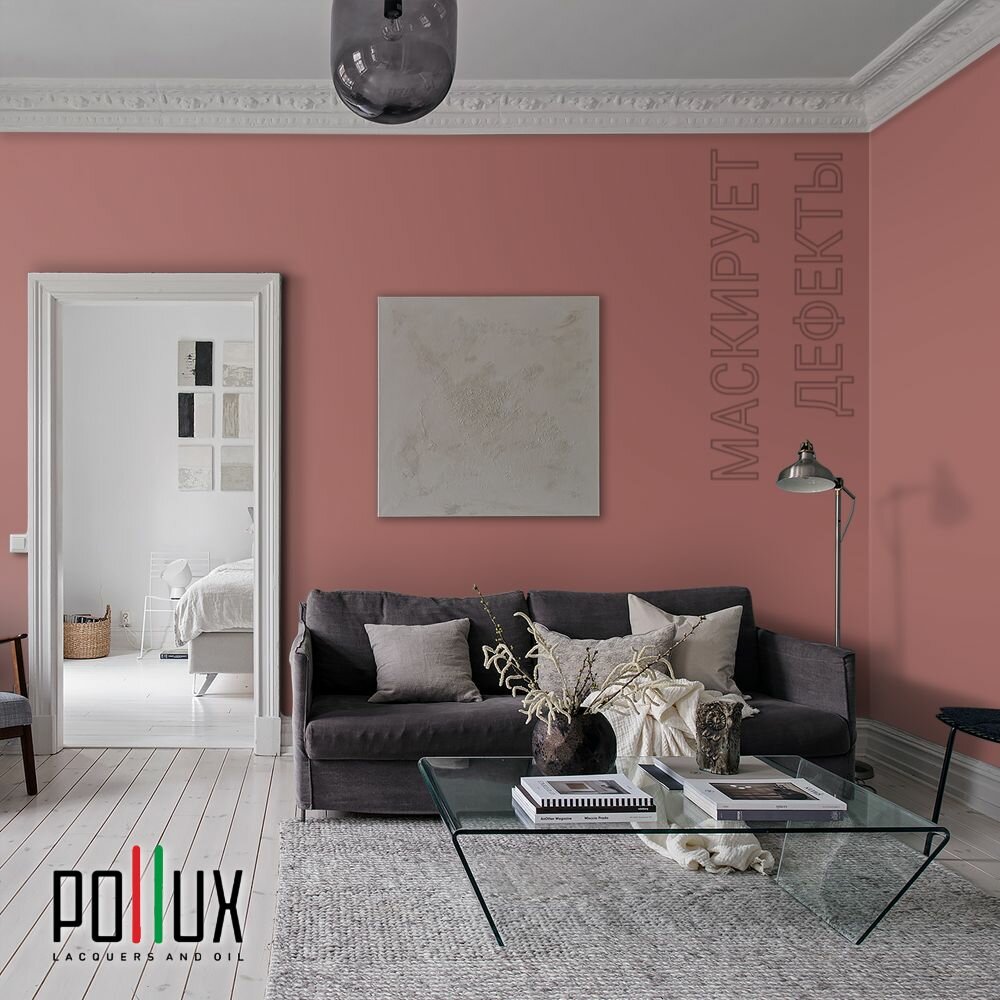 Краска моющаяся интерьерная для стен и потолков, Pollux INTERIOR без запаха, быстросохнущая, акриловая, матовое покрытие, цвет NCS S 3010-Y90R, 1л.