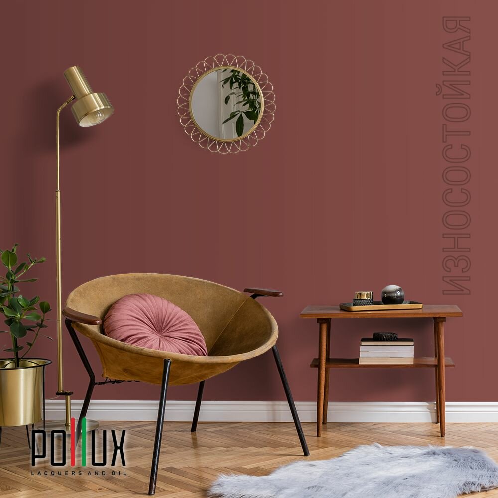 Краска моющаяся интерьерная для стен и потолков, Pollux INTERIOR без запаха, быстросохнущая, акриловая, матовое покрытие, цвет NCS S 3010-Y90R, 1л.