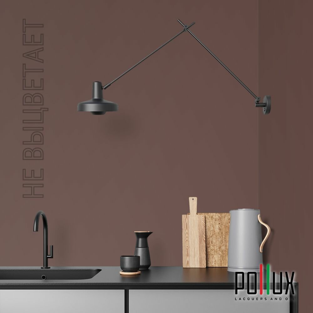Краска моющаяся интерьерная для стен и потолков, Pollux INTERIOR без запаха, быстросохнущая, акриловая, матовое покрытие, цвет NCS S 7020-Y90R, 1л.