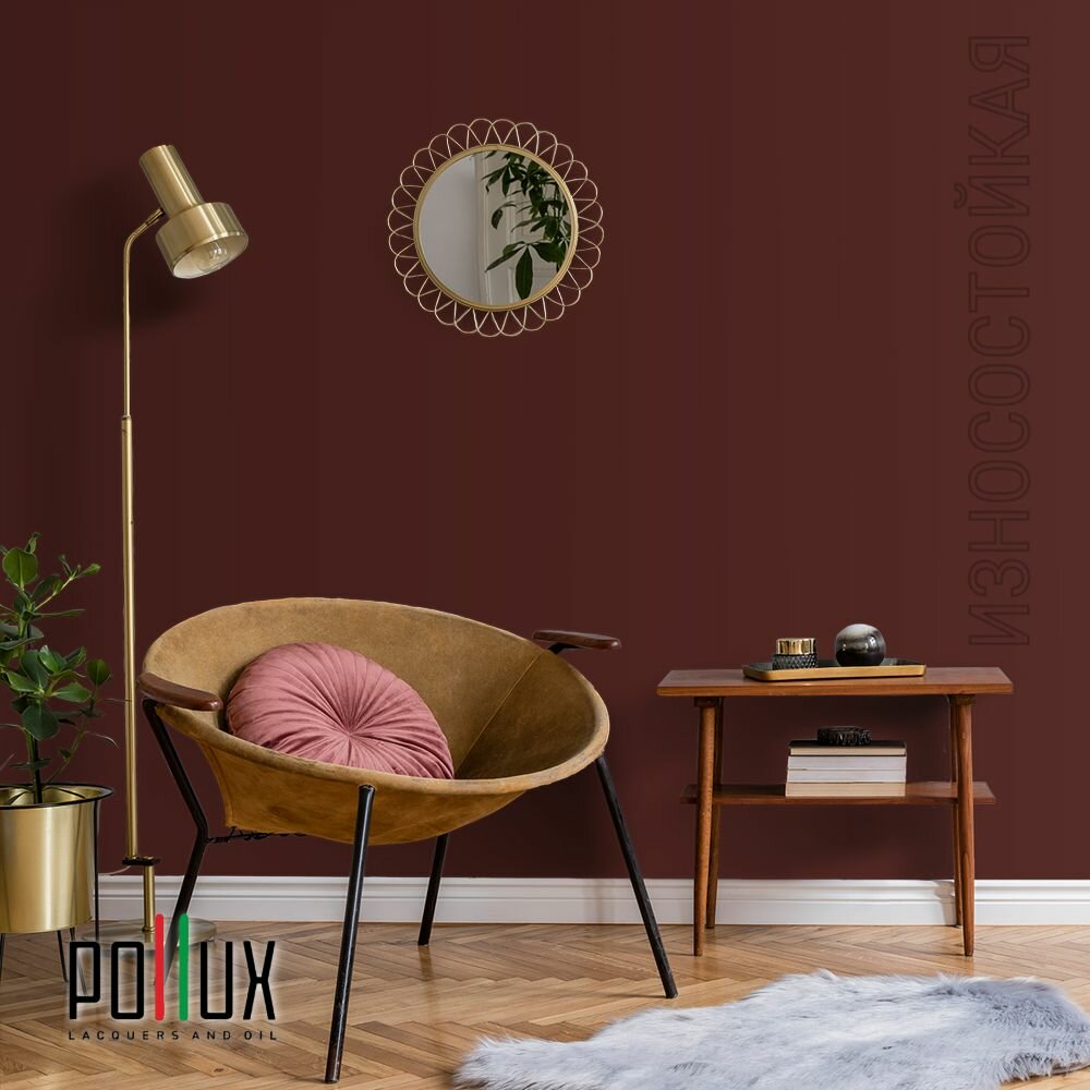 Краска моющаяся интерьерная для стен и потолков, Pollux INTERIOR без запаха, быстросохнущая, акриловая, матовое покрытие, цвет NCS S 3010-Y90R, 1л.