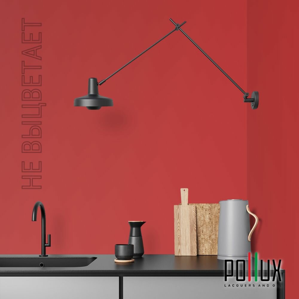 Краска моющаяся интерьерная для стен и потолков, Pollux INTERIOR без запаха, быстросохнущая, акриловая, матовое покрытие, цвет NCS S 3050-Y90R, 1л.