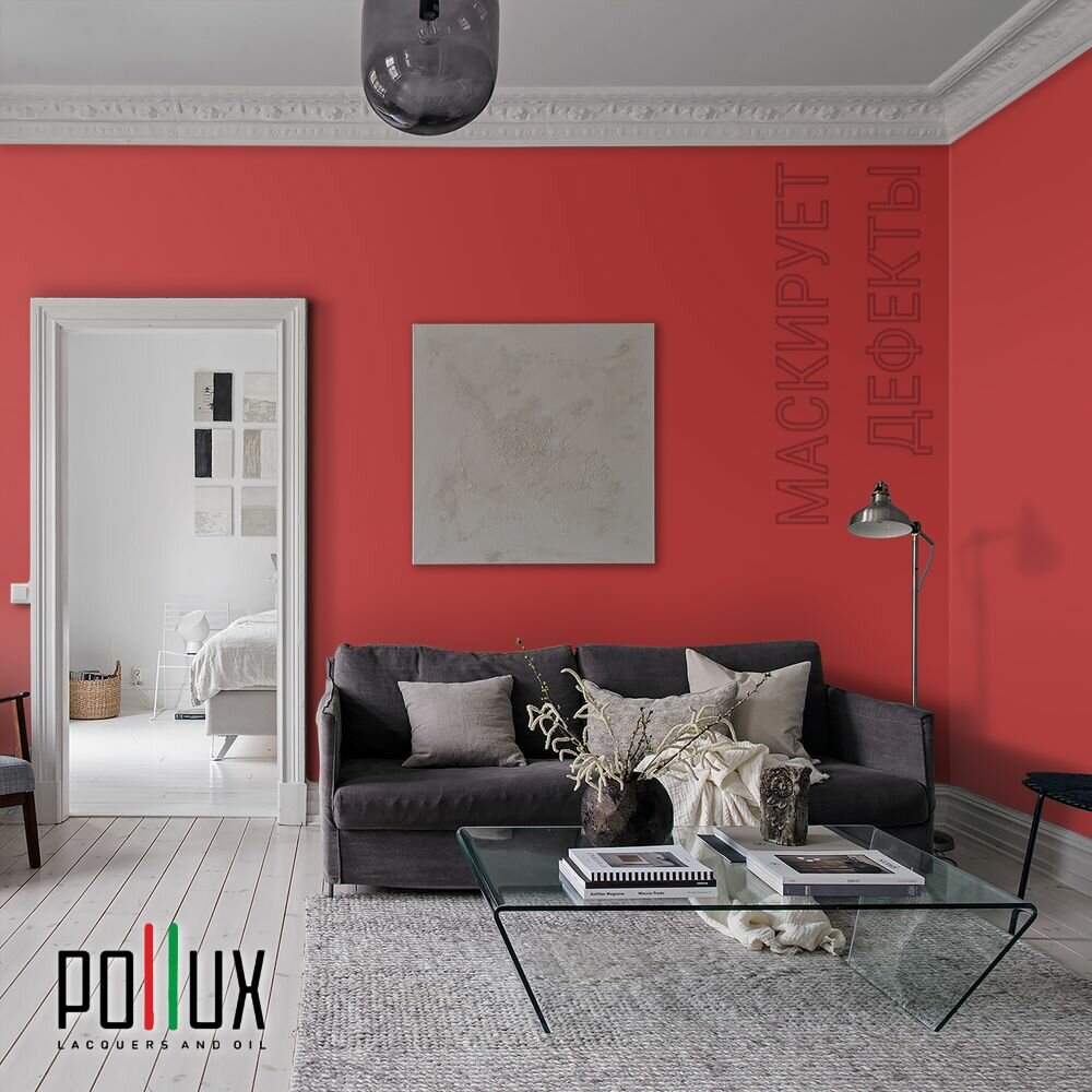 Краска моющаяся интерьерная для стен и потолков, Pollux INTERIOR без запаха, быстросохнущая, акриловая, матовое покрытие, цвет NCS S 3010-Y90R, 1л.