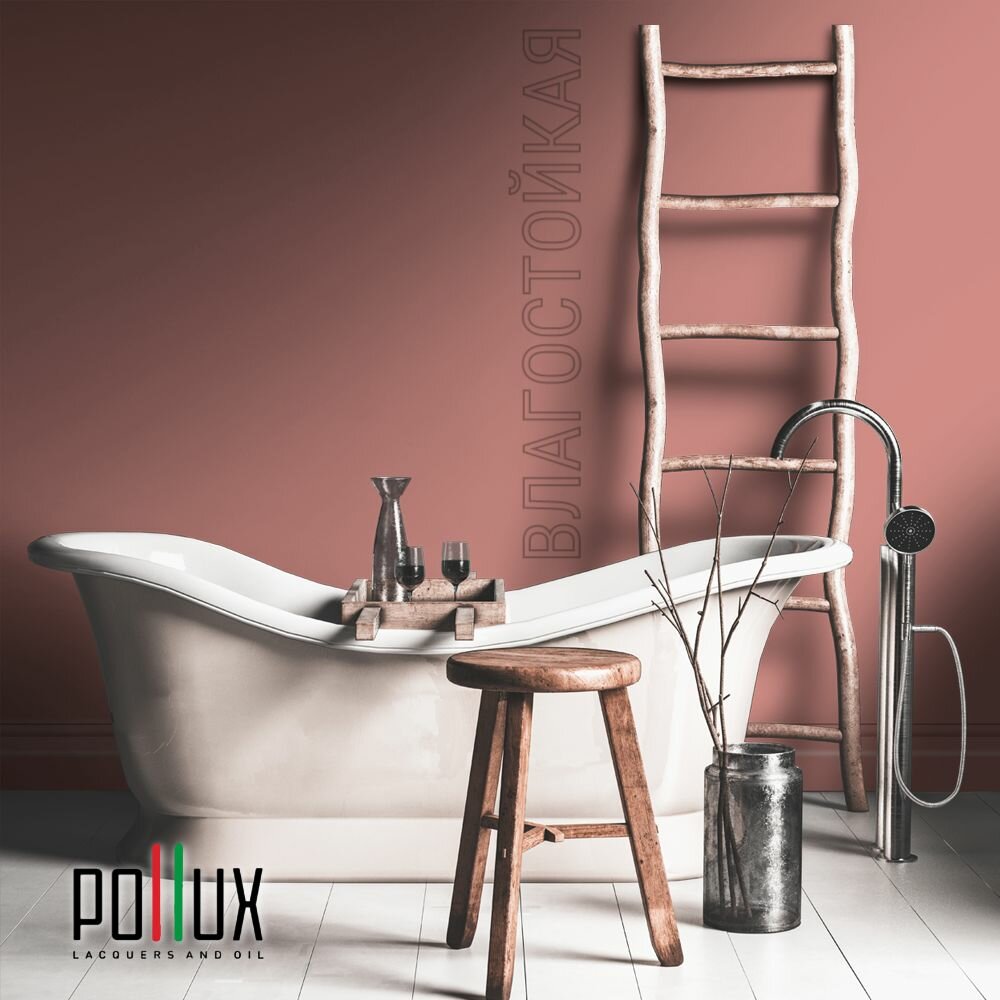 Краска моющаяся интерьерная для стен и потолков, Pollux INTERIOR без запаха, быстросохнущая, акриловая, матовое покрытие, цвет NCS S 5020-Y90R, 1л.