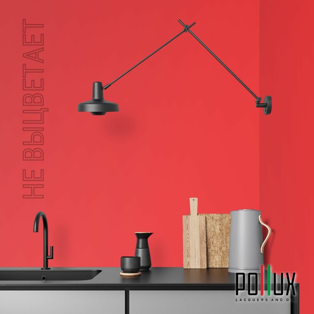 Краска моющаяся интерьерная для стен и потолков, Pollux INTERIOR без запаха, быстросохнущая, акриловая, матовое покрытие, цвет NCS S 3010-Y90R, 1л.