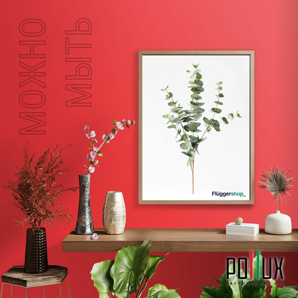 Краска моющаяся интерьерная для стен и потолков, Pollux INTERIOR без запаха, быстросохнущая, акриловая, матовое покрытие, цвет NCS S 3050-Y90R, 1л.