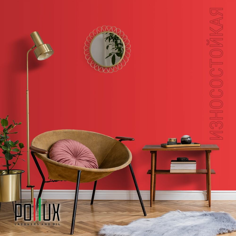 Краска моющаяся интерьерная для стен и потолков, Pollux INTERIOR без запаха, быстросохнущая, акриловая, матовое покрытие, цвет NCS S 3030-Y90R, 5л.