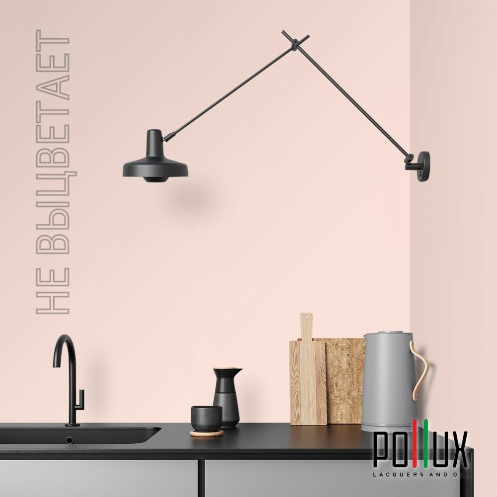Краска моющаяся интерьерная для стен и потолков, Pollux INTERIOR без запаха, быстросохнущая, акриловая, матовое покрытие, цвет NCS S 7010-Y90R, 1л.