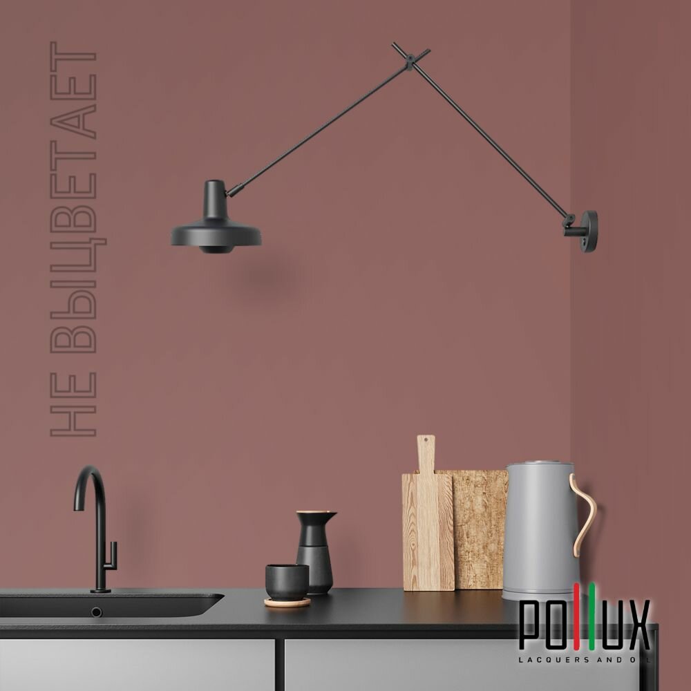 Краска моющаяся интерьерная для стен и потолков, Pollux INTERIOR без запаха, быстросохнущая, акриловая, матовое покрытие, цвет NCS S 7020-Y90R, 1л.