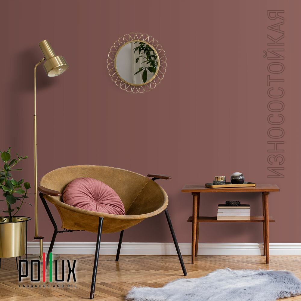Краска моющаяся интерьерная для стен и потолков, Pollux INTERIOR без запаха, быстросохнущая, акриловая, матовое покрытие, цвет NCS S 3010-Y90R, 1л.