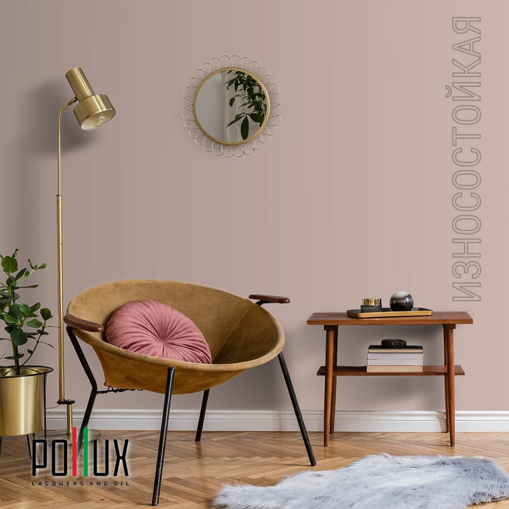 Краска моющаяся интерьерная для стен и потолков, Pollux INTERIOR без запаха, быстросохнущая, акриловая, матовое покрытие, цвет NCS S 1015-Y90R, 1л.