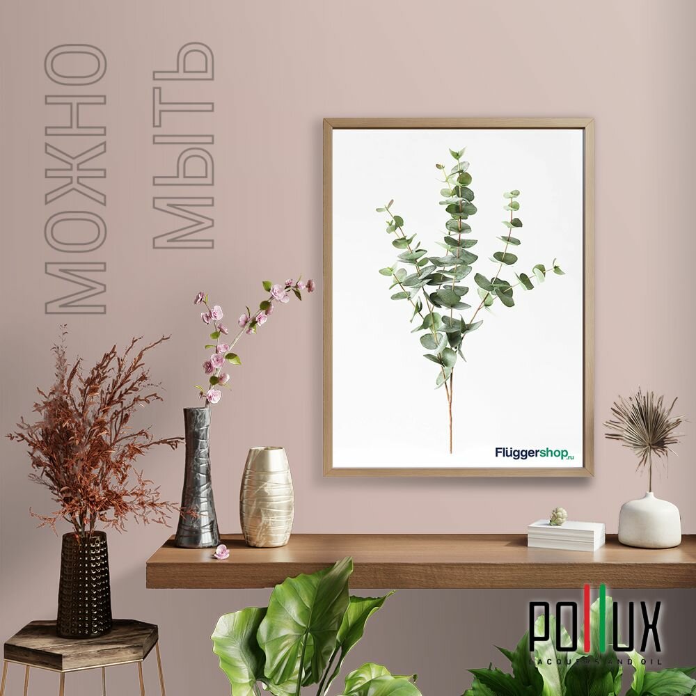Краска моющаяся интерьерная для стен и потолков, Pollux INTERIOR без запаха, быстросохнущая, акриловая, матовое покрытие, цвет NCS S 5020-Y90R, 1л.