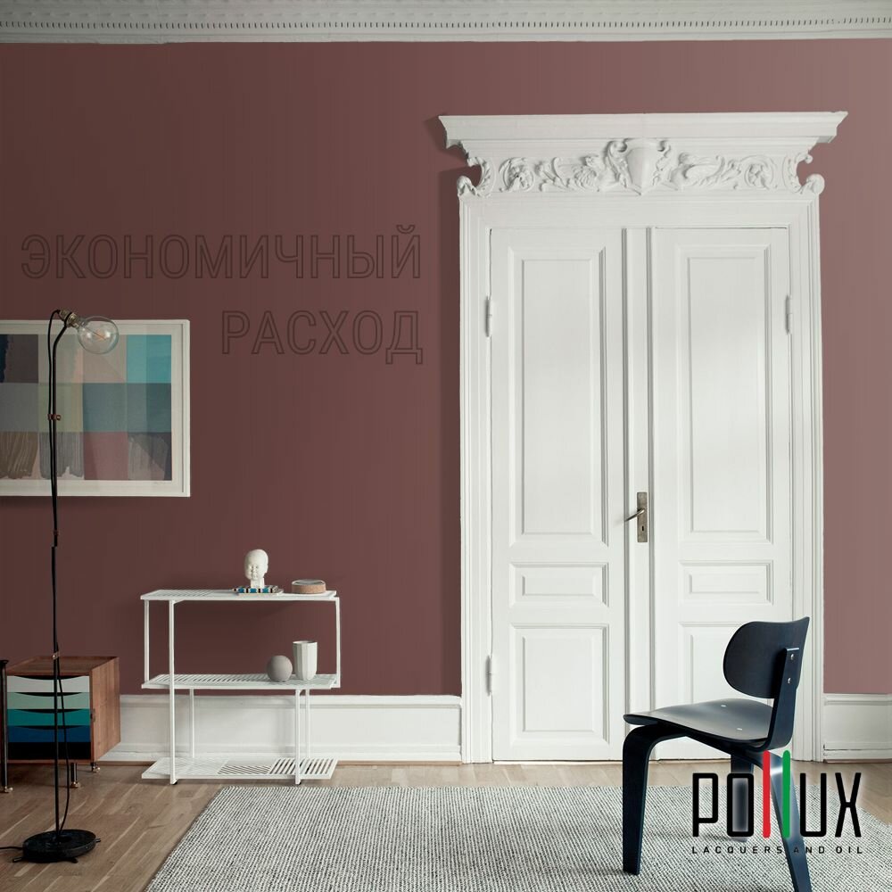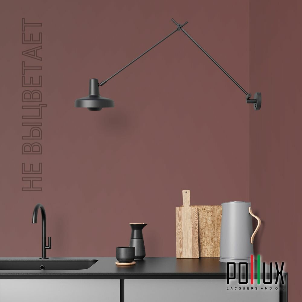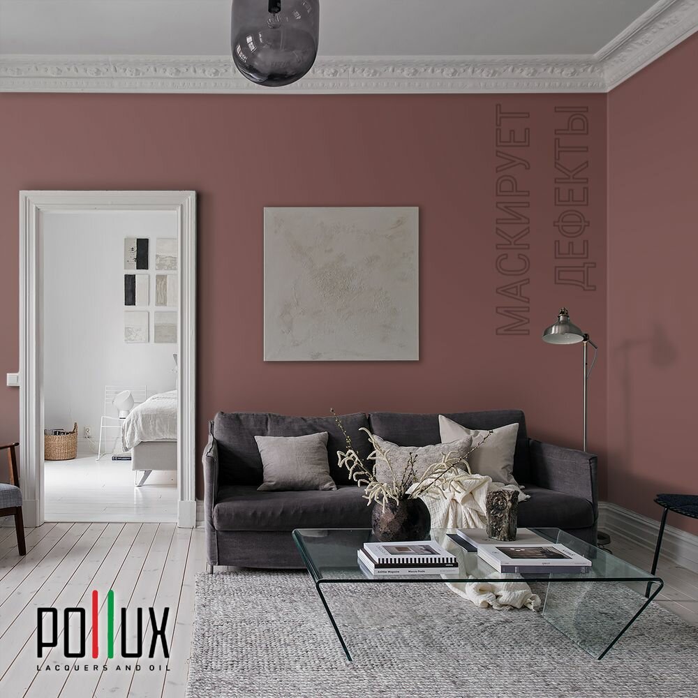 Краска моющаяся интерьерная для стен и потолков, Pollux INTERIOR без запаха, быстросохнущая, акриловая, матовое покрытие, цвет NCS S 8010-Y90R, 1л.