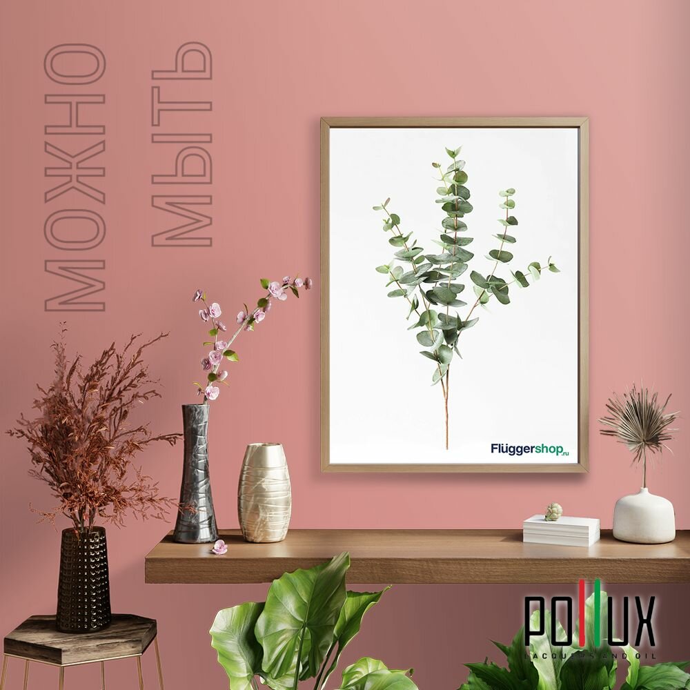 Краска моющаяся интерьерная для стен и потолков, Pollux INTERIOR без запаха, быстросохнущая, акриловая, матовое покрытие, цвет NCS S 3010-Y90R, 1л.