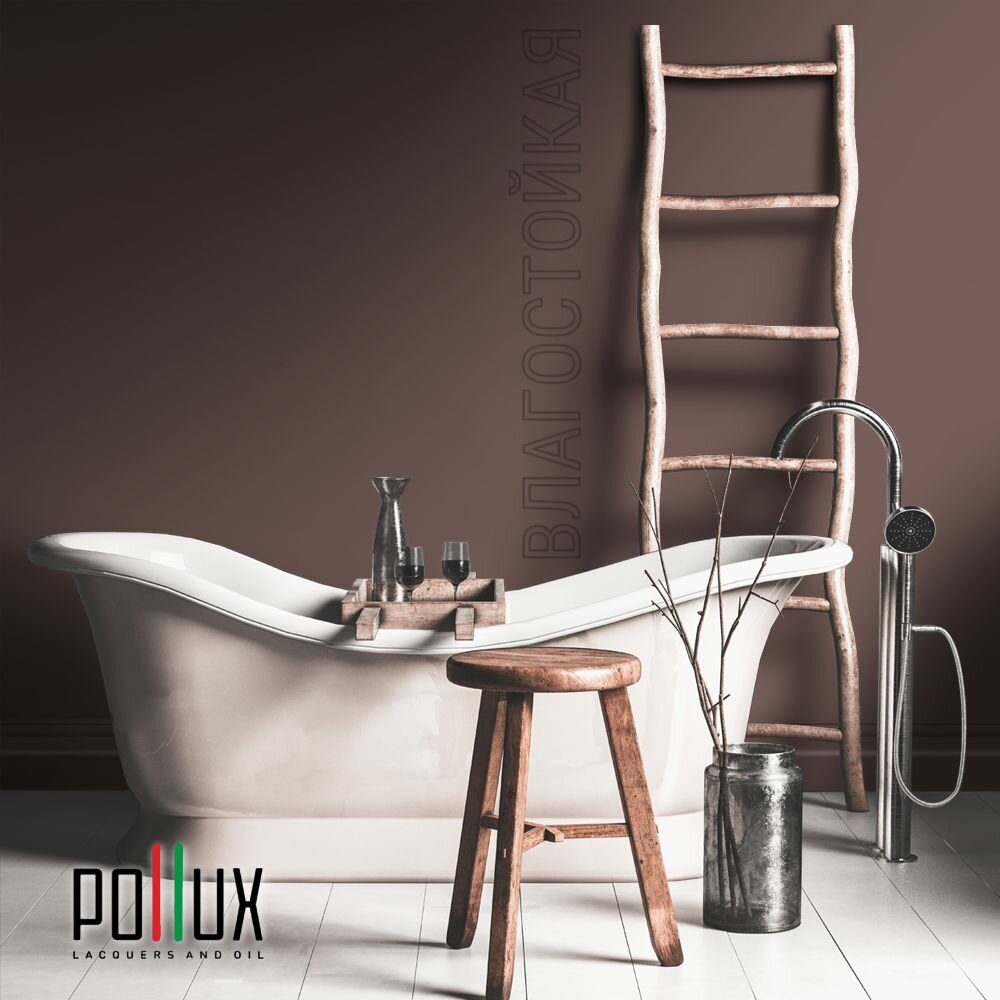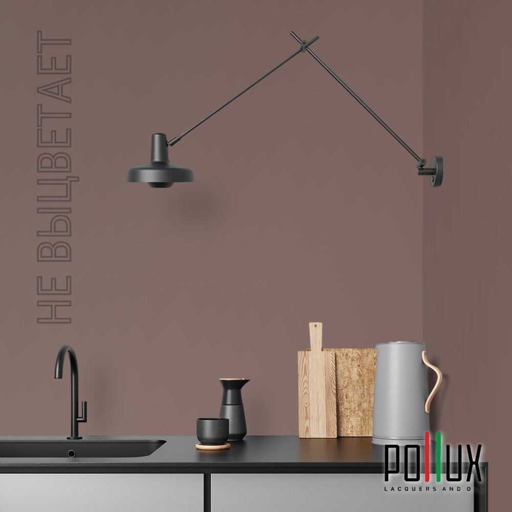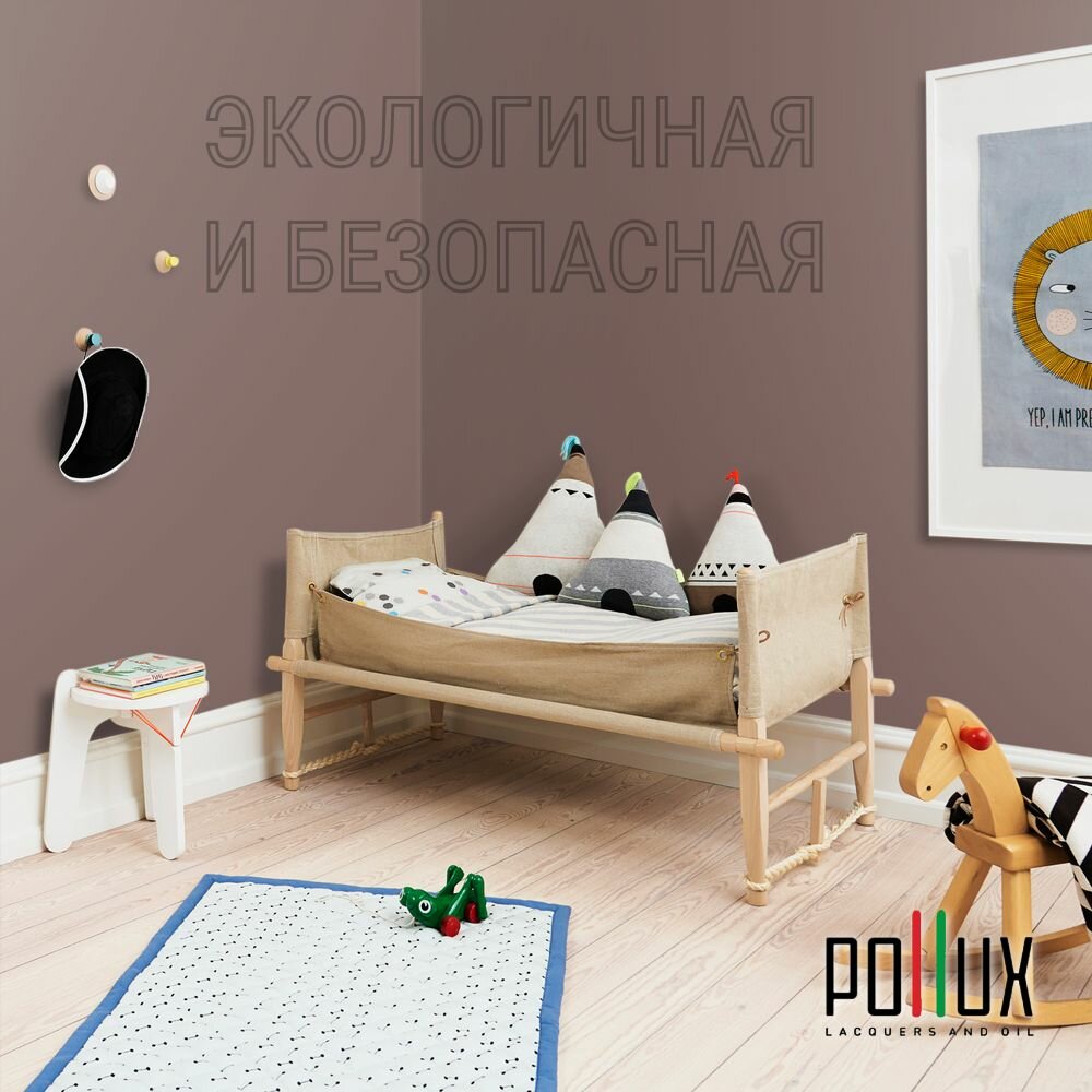 Краска моющаяся интерьерная для стен и потолков, Pollux INTERIOR без запаха, быстросохнущая, акриловая, матовое покрытие, цвет NCS S 8010-Y90R, 1л.