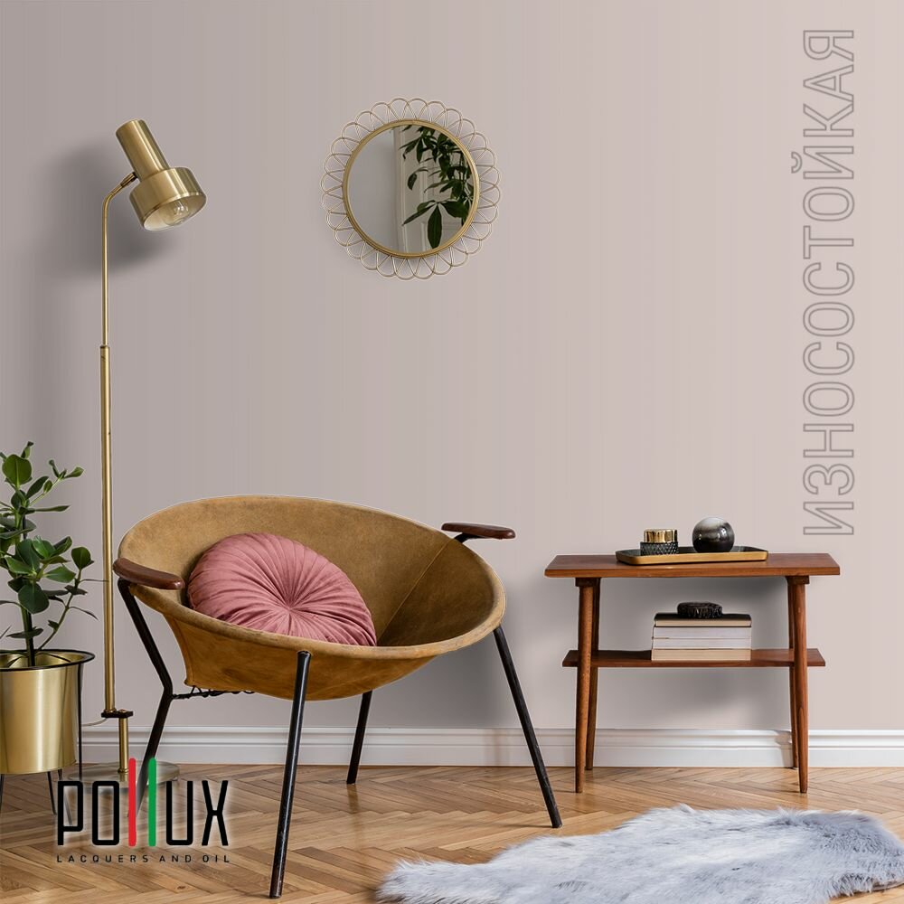 Краска моющаяся интерьерная для стен и потолков, Pollux INTERIOR без запаха, быстросохнущая, акриловая, матовое покрытие, цвет NCS S 4030-Y90R, 1л.