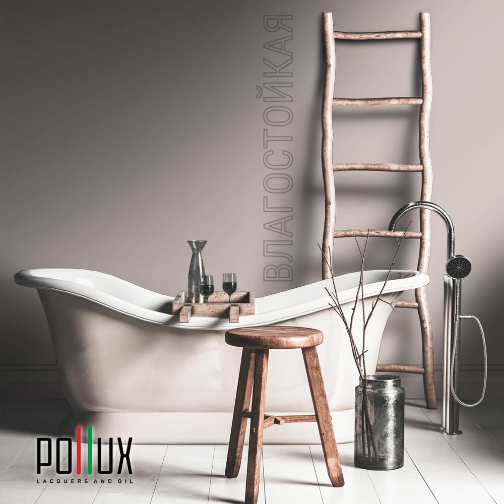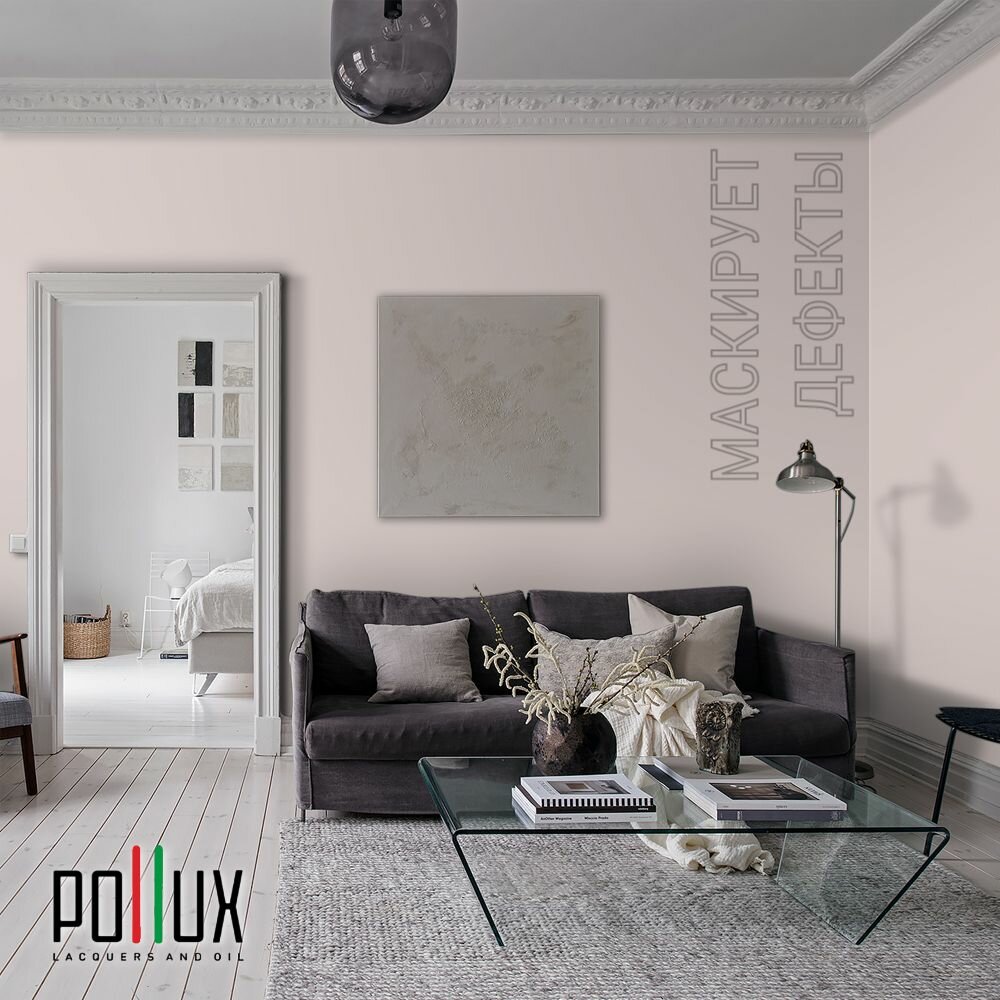 Краска моющаяся интерьерная для стен и потолков, Pollux INTERIOR без запаха, быстросохнущая, акриловая, матовое покрытие, цвет NCS S 7010-Y90R, 1л.
