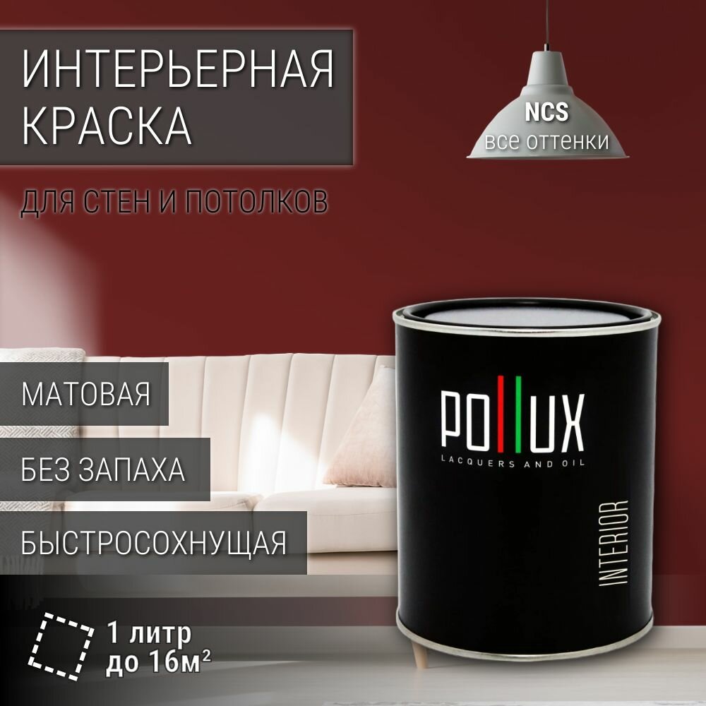 Краска моющаяся интерьерная для стен и потолков, Pollux INTERIOR без запаха, быстросохнущая, акриловая, матовое покрытие, цвет NCS S 3010-Y90R, 1л.
