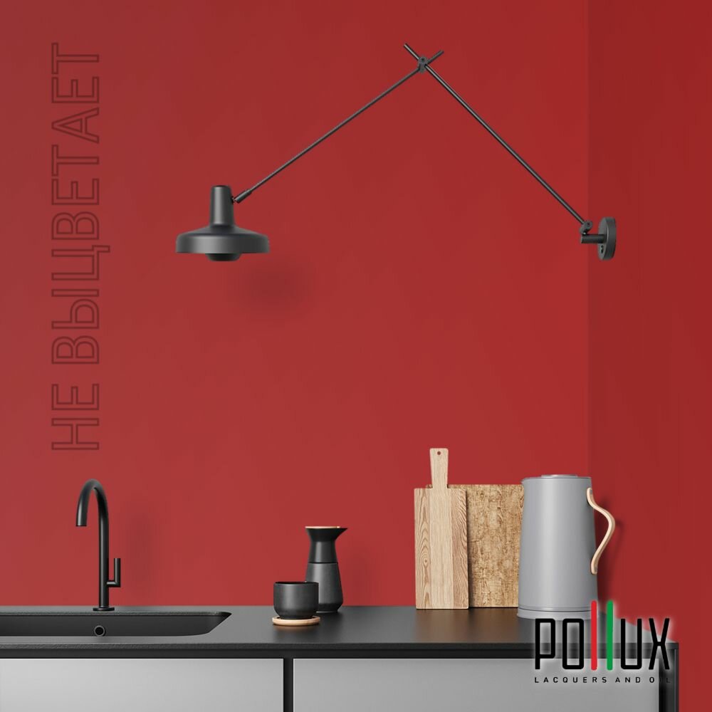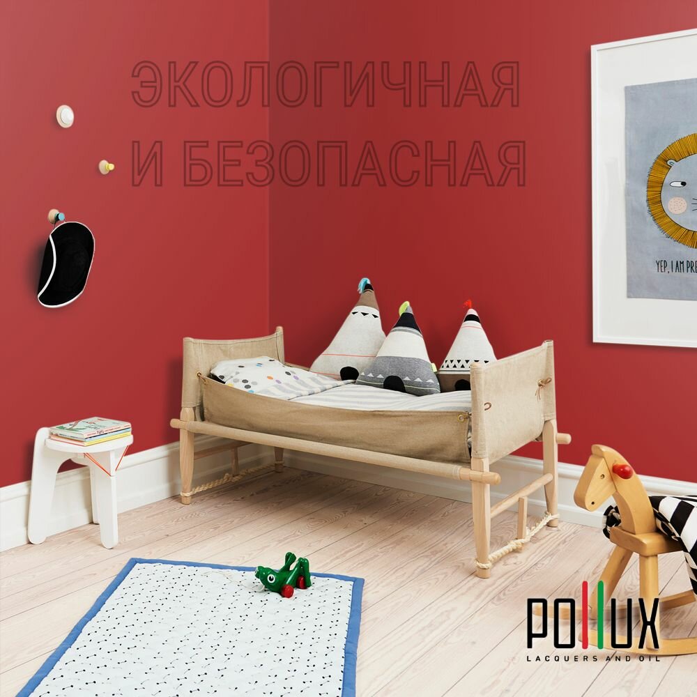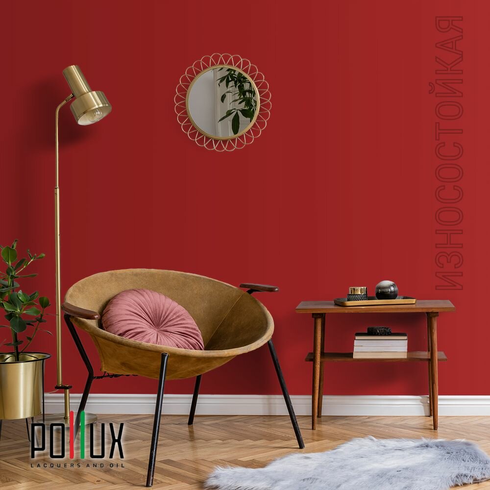 Краска моющаяся интерьерная для стен и потолков, Pollux INTERIOR без запаха, быстросохнущая, акриловая, матовое покрытие, цвет NCS S 3010-Y90R, 1л.