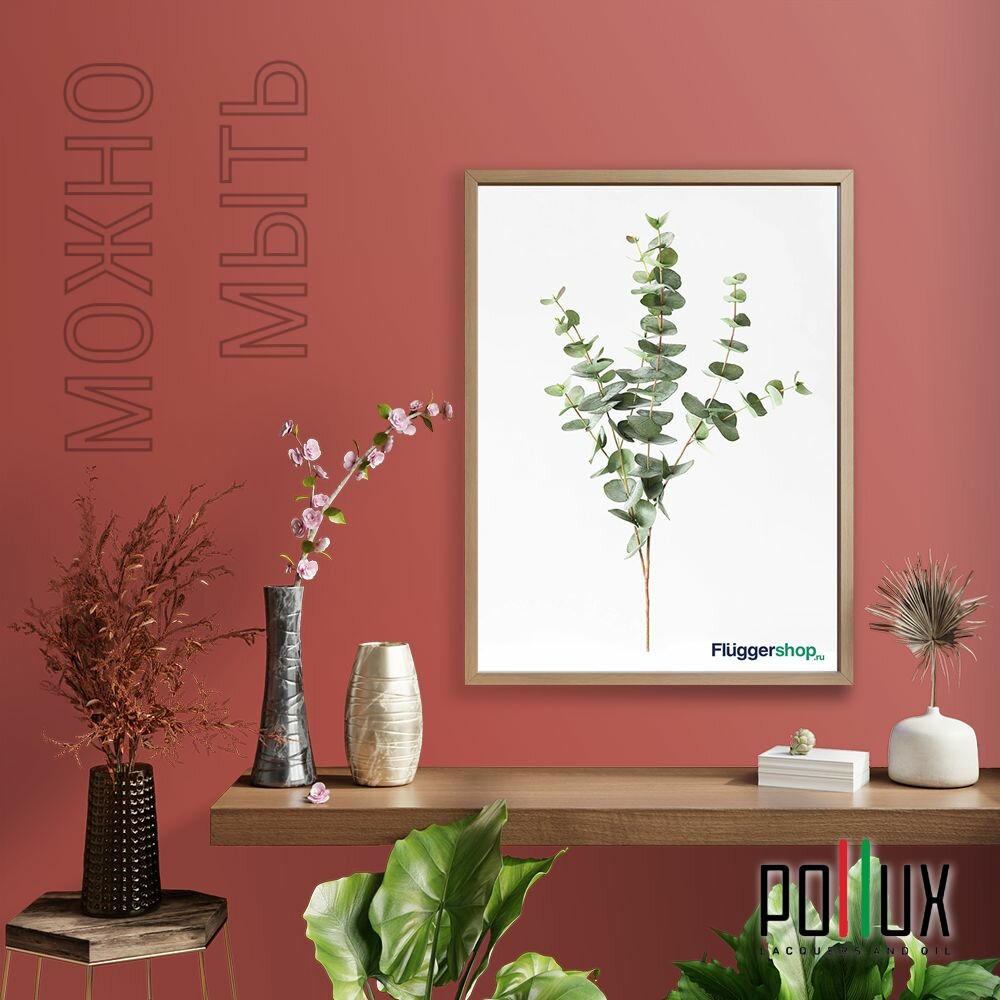 Краска моющаяся интерьерная для стен и потолков, Pollux INTERIOR без запаха, быстросохнущая, акриловая, матовое покрытие, цвет NCS S 3010-Y90R, 1л.