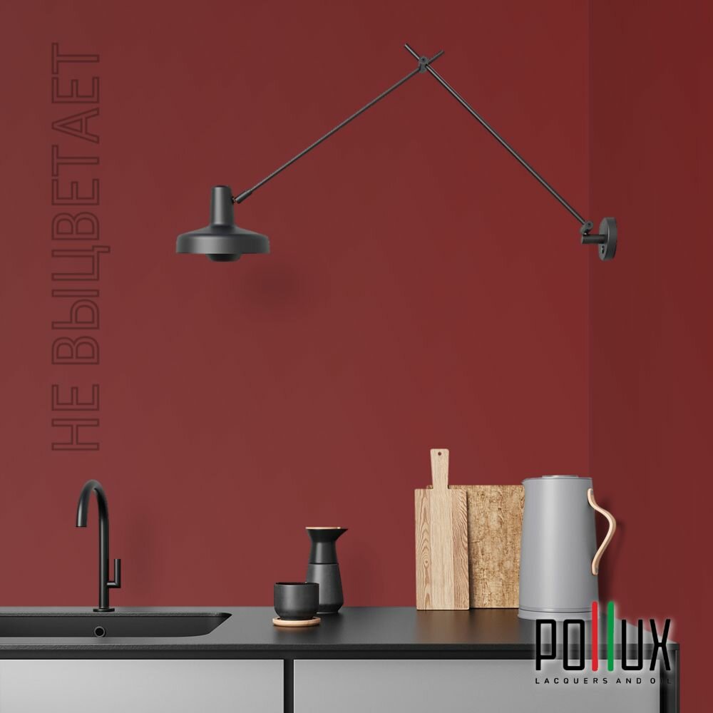 Краска моющаяся интерьерная для стен и потолков, Pollux INTERIOR без запаха, быстросохнущая, акриловая, матовое покрытие, цвет NCS S 3010-Y90R, 1л.