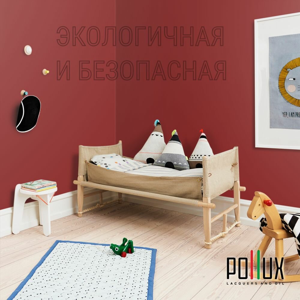 Краска моющаяся интерьерная для стен и потолков, Pollux INTERIOR без запаха, быстросохнущая, акриловая, матовое покрытие, цвет NCS S 3010-Y90R, 1л.
