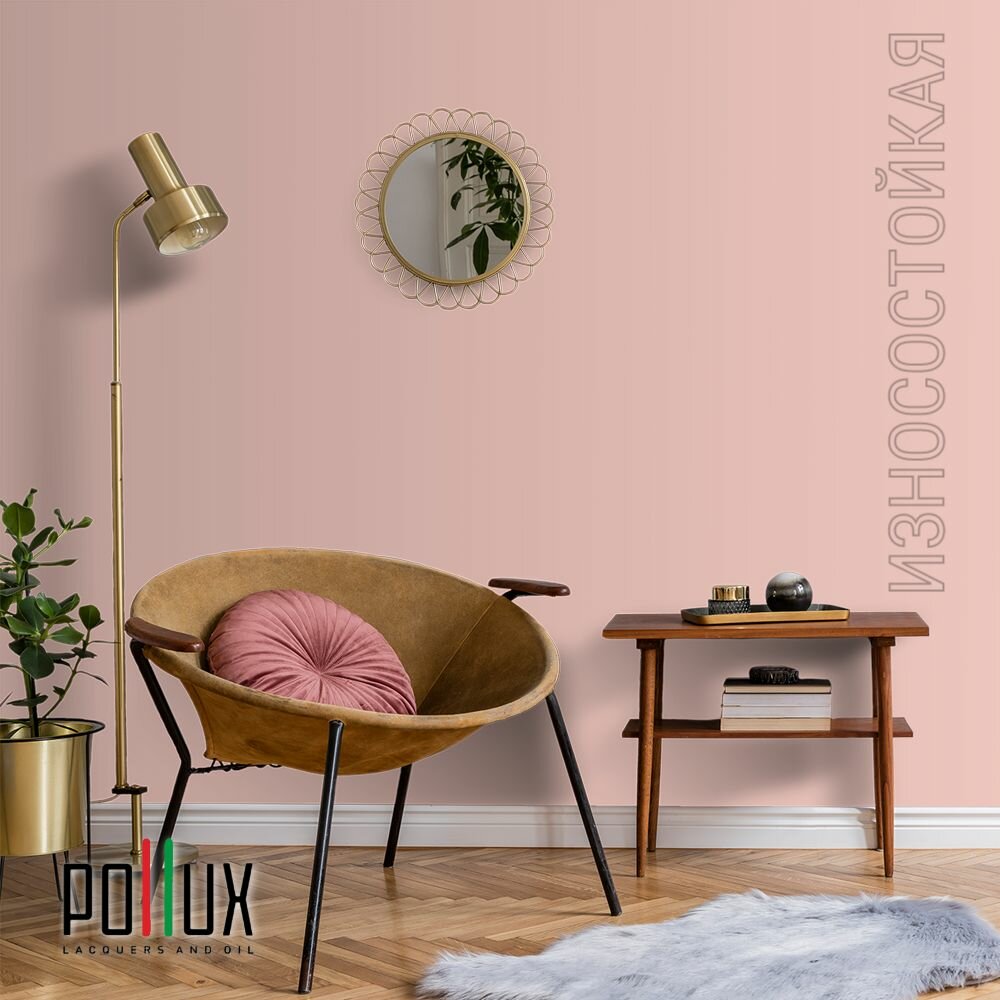 Краска моющаяся интерьерная для стен и потолков, Pollux INTERIOR без запаха, быстросохнущая, акриловая, матовое покрытие, цвет NCS S 1580-Y90R, 1л.