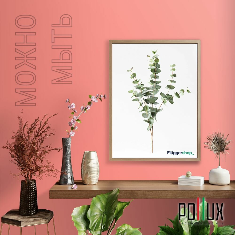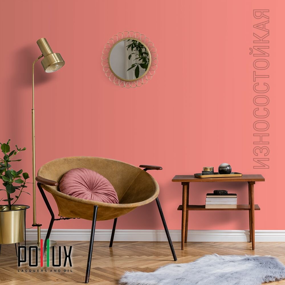 Краска моющаяся интерьерная для стен и потолков, Pollux INTERIOR без запаха, быстросохнущая, акриловая, матовое покрытие, цвет NCS S 3050-Y90R, 1л.