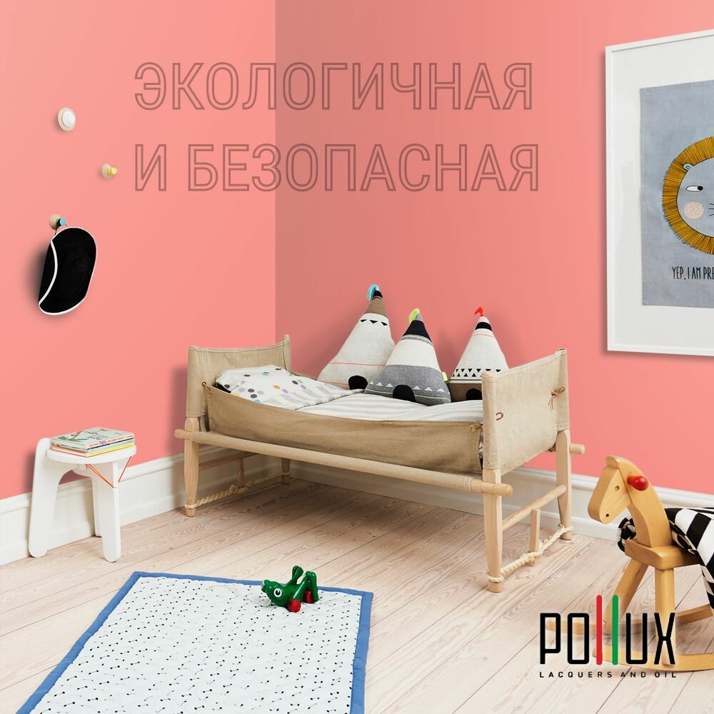 Краска моющаяся интерьерная для стен и потолков, Pollux INTERIOR без запаха, быстросохнущая, акриловая, матовое покрытие, цвет NCS S 5020-Y90R, 1л.