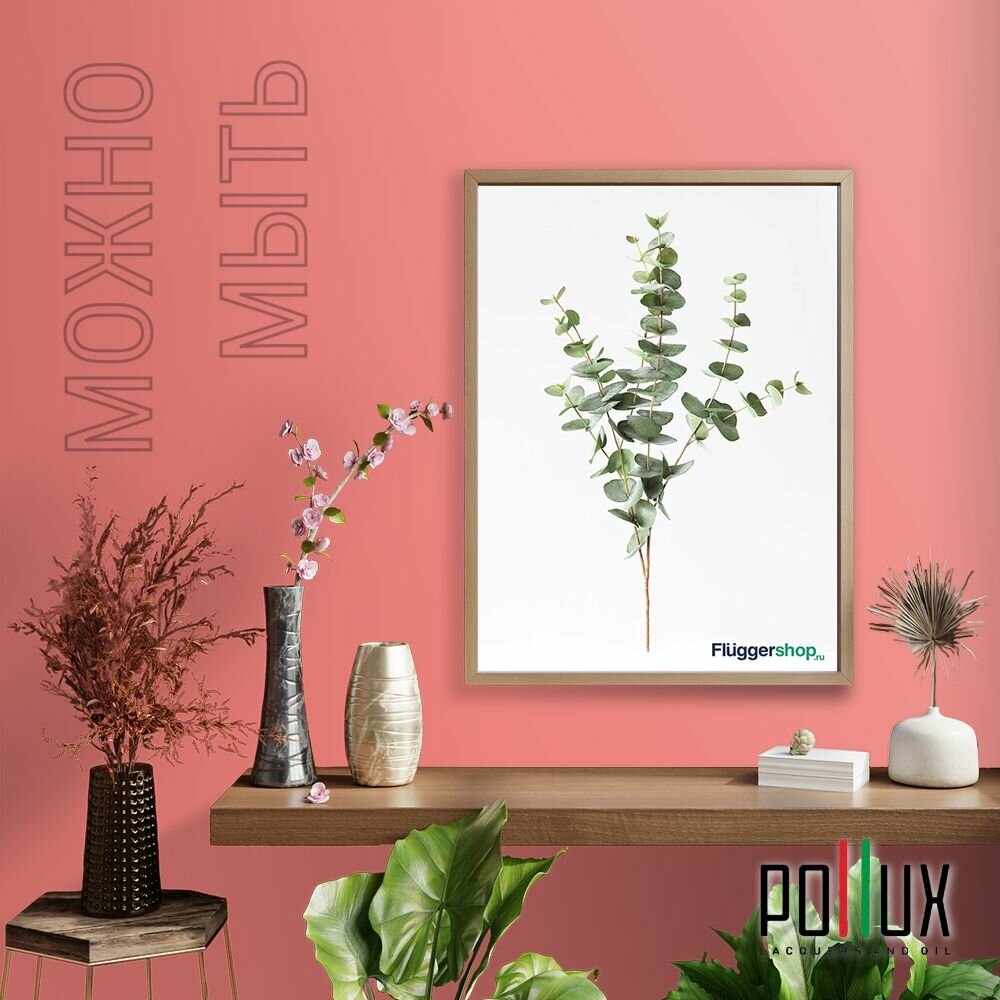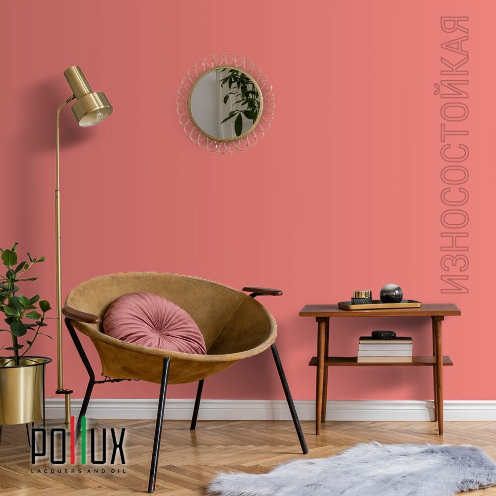 Краска моющаяся интерьерная для стен и потолков, Pollux INTERIOR без запаха, быстросохнущая, акриловая, матовое покрытие, цвет NCS S 3010-Y90R, 1л.
