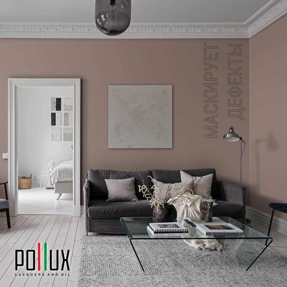 Краска моющаяся интерьерная для стен и потолков, Pollux INTERIOR без запаха, быстросохнущая, акриловая, матовое покрытие, цвет NCS S 7020-Y90R, 1л.
